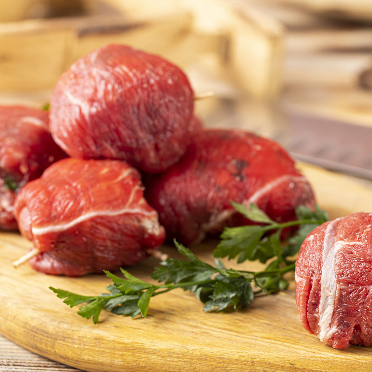 Sono involtini di vitello con un ripieno di pecorino, prezzemolo e aglio, ma potete scegliere anche la variante vuota senza alcun condimento.